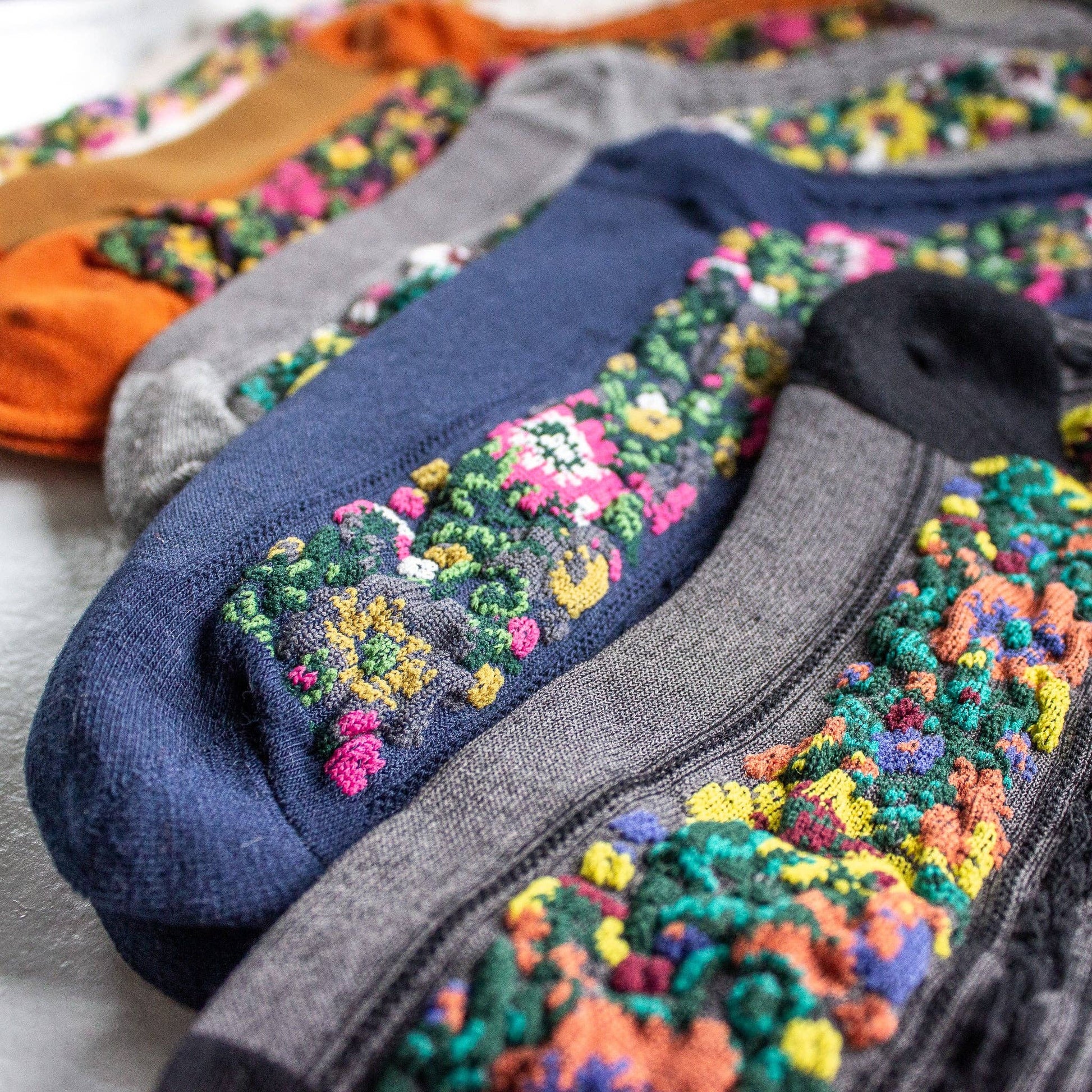 Meet the CUTEST boot socks for fall and winter! These soft and cozy crew length socks feature adorable floral print sides. Pair them with any boot for a touch of retro bohemian flare!