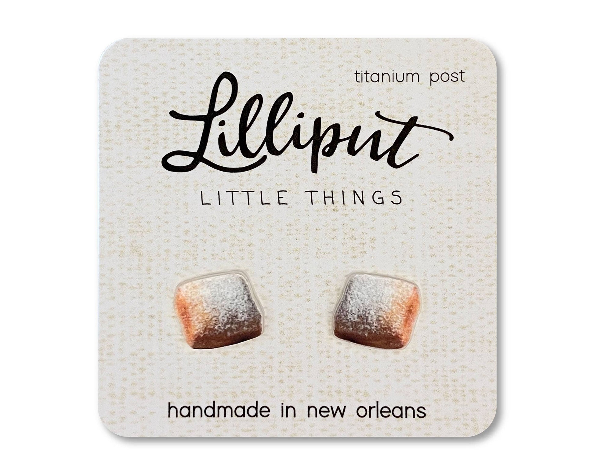 These earrings are supposed to look like beignets, but they also are perfect colors that remind me of fall in Montana! These earrings are designed for all-day comfort with hypoallergenic titanium posts.