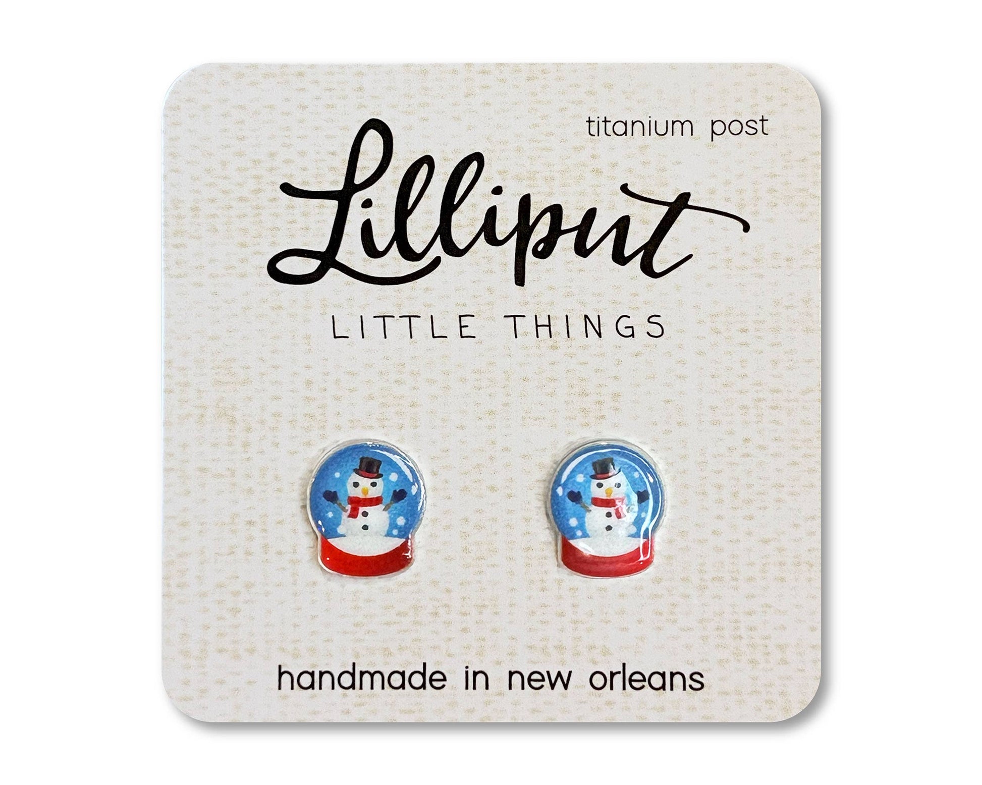 These snowman snow globe earrings are so cute! They are designed for all-day comfort with hypoallergenic titanium posts. The vibrant print will never fade & earrings are 100% waterproof!